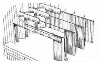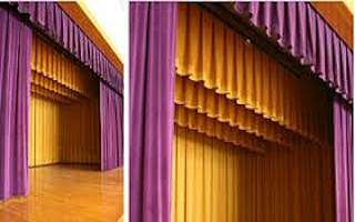 Stage Draperies are essentially fabric panels that are hung as part of a scene or to mask unwanted views. There are multiple types of curtain that can be employed in a theatrical/auditorium stage setting. Common curtain groups are Proscenium Curtains that provides a sight and sound barrier between stage and audience, Masking Curtains for hiding or 'masking off', and giving additional stage depth, and Backdrop Curtains for projection and lighting effects.